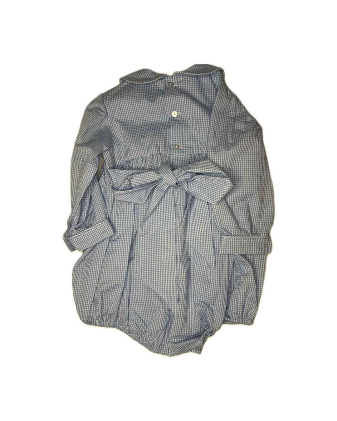 Girl 18M Baby Sen Petit Gingham Blue w/ Red Smocked LS Bubble